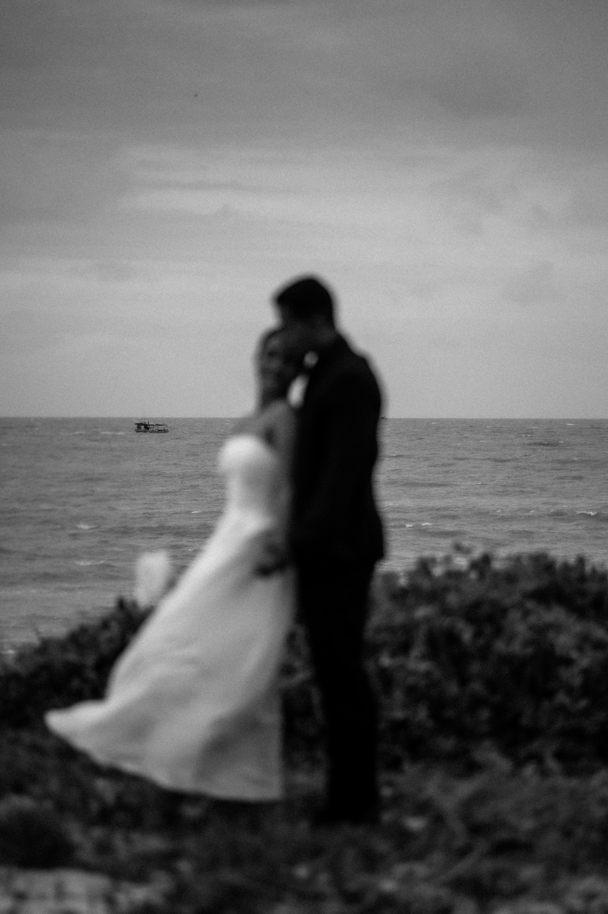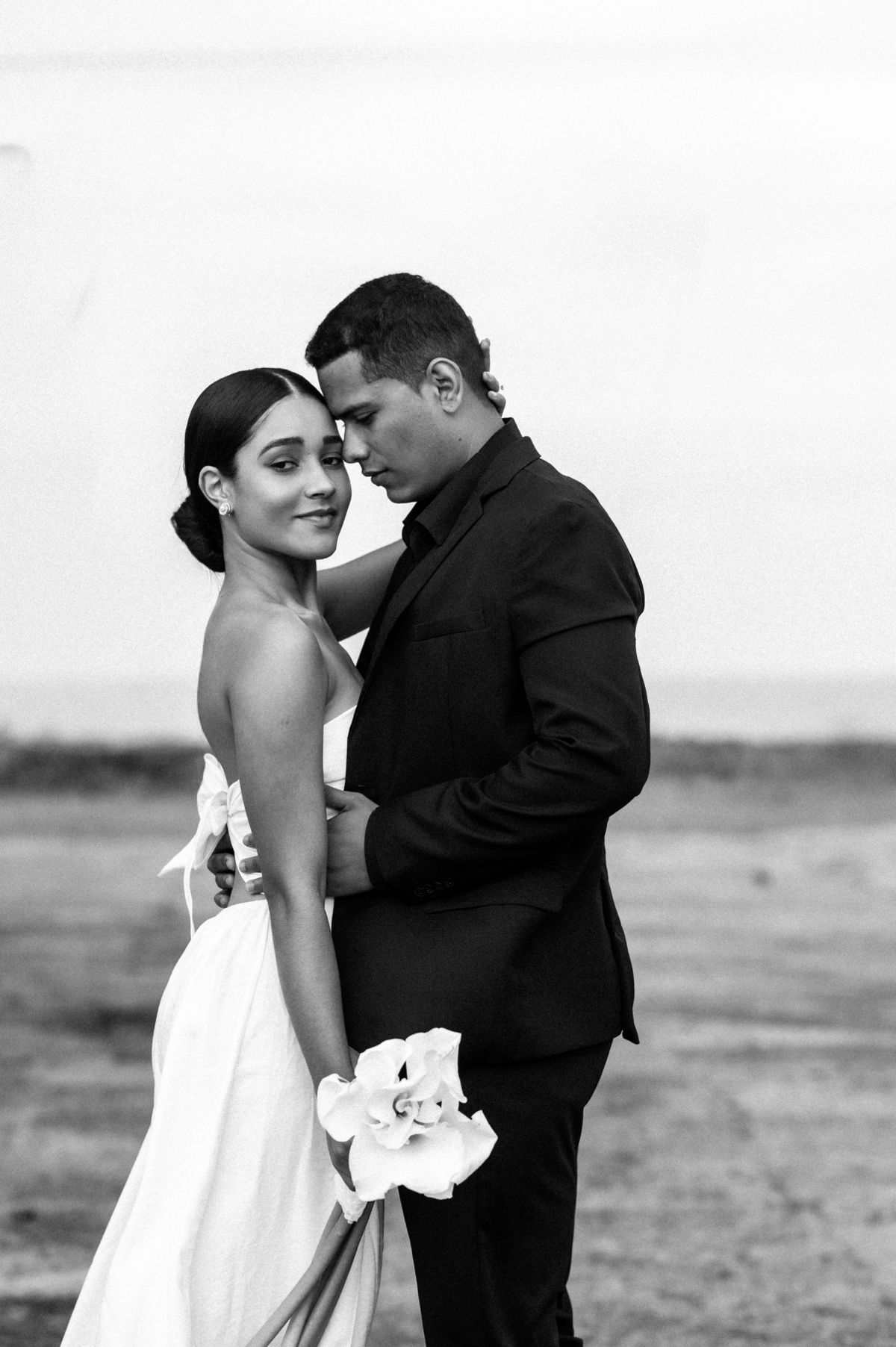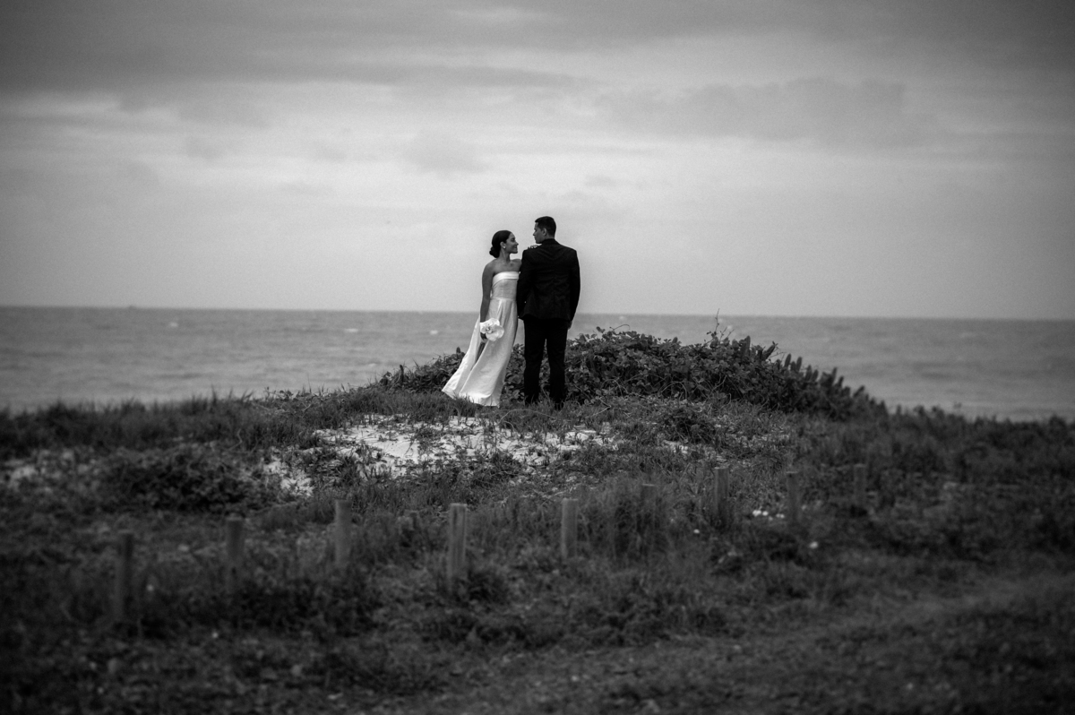 O dia nublado trouxe uma luz suave, perfeita para traduzir a elegância, a leveza e a poesia desse momento. A praia, o vento e cada gesto contaram uma história sobre amor, sobre conexão e sobre tudo o que há de mais bonito entre duas pessoas.